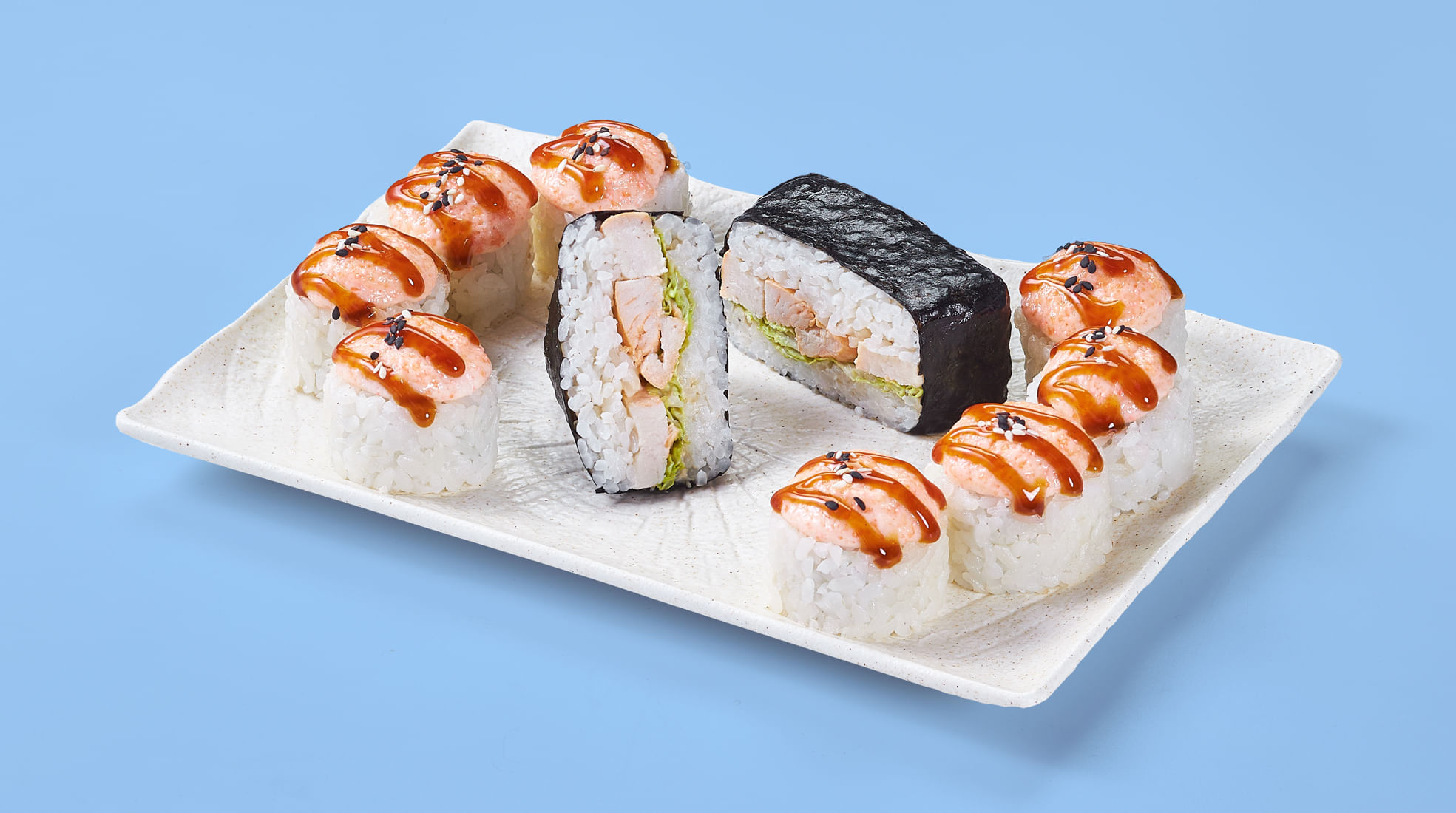 Состав: Аква (8шт.), Онигири с курицей. Не забудьте заказать имбирь, васаби и соевый соус. Они не входят в стоимость заказа. *Внешний вид блюда может отличаться от фото на сайте.