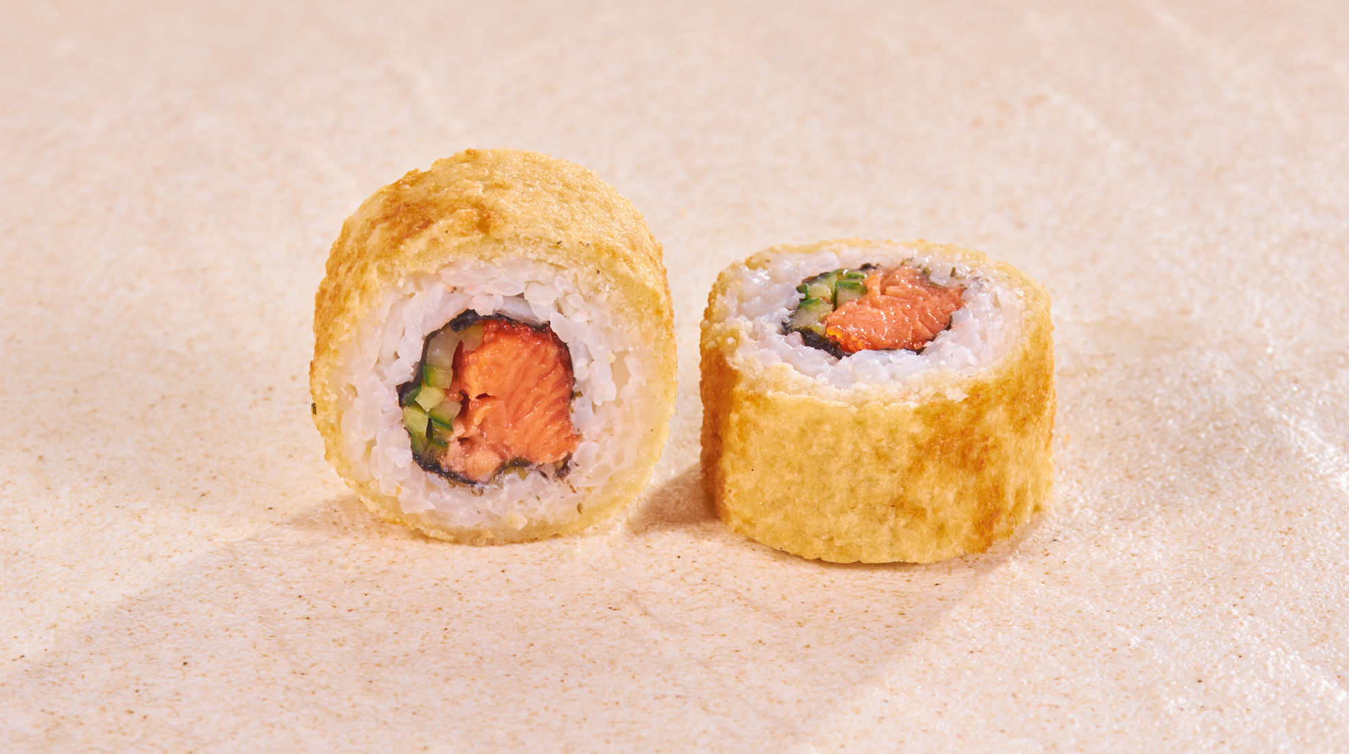 Состав: Лосось, оранжевая икра масаго, соус спайси, огурец, темпурный кляр (темпурная мука, вода), панировочные сухари, рис (рис, вода, заправка для риса), нори *Не забудьте заказать имбирь, васаби и соевый соус. Они не входят в стоимость заказа. *Внешний вид блюда может отличаться от фото на сайте.