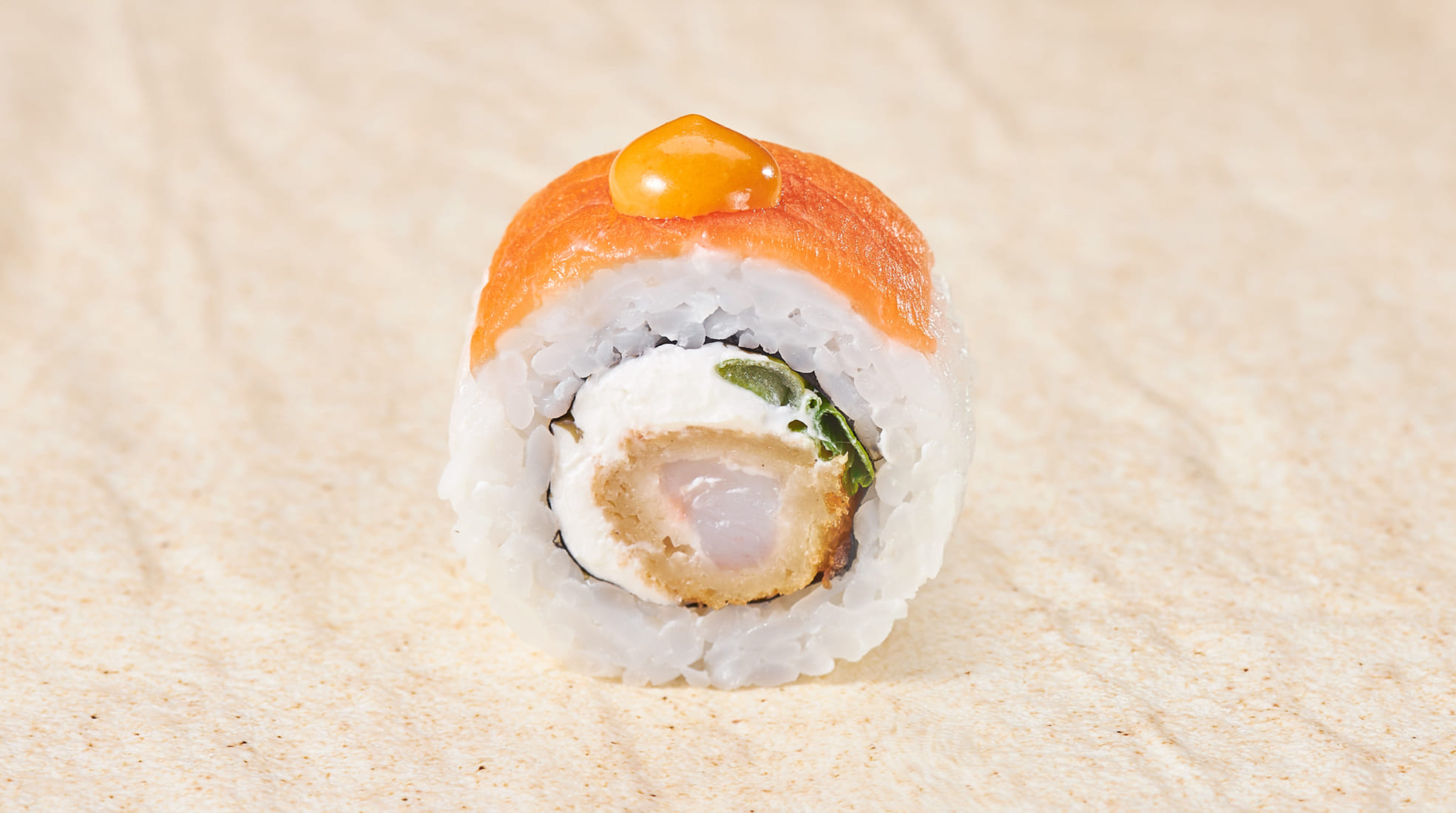 Состав: Лосось, крем чиз, креветка в панировке, лук зеленый, соус спайси, рис, нори. *Не забудьте заказать имбирь, васаби и соевый соус. Они не входят в стоимость заказа. *Внешний вид блюда может отличаться от фото на сайте.