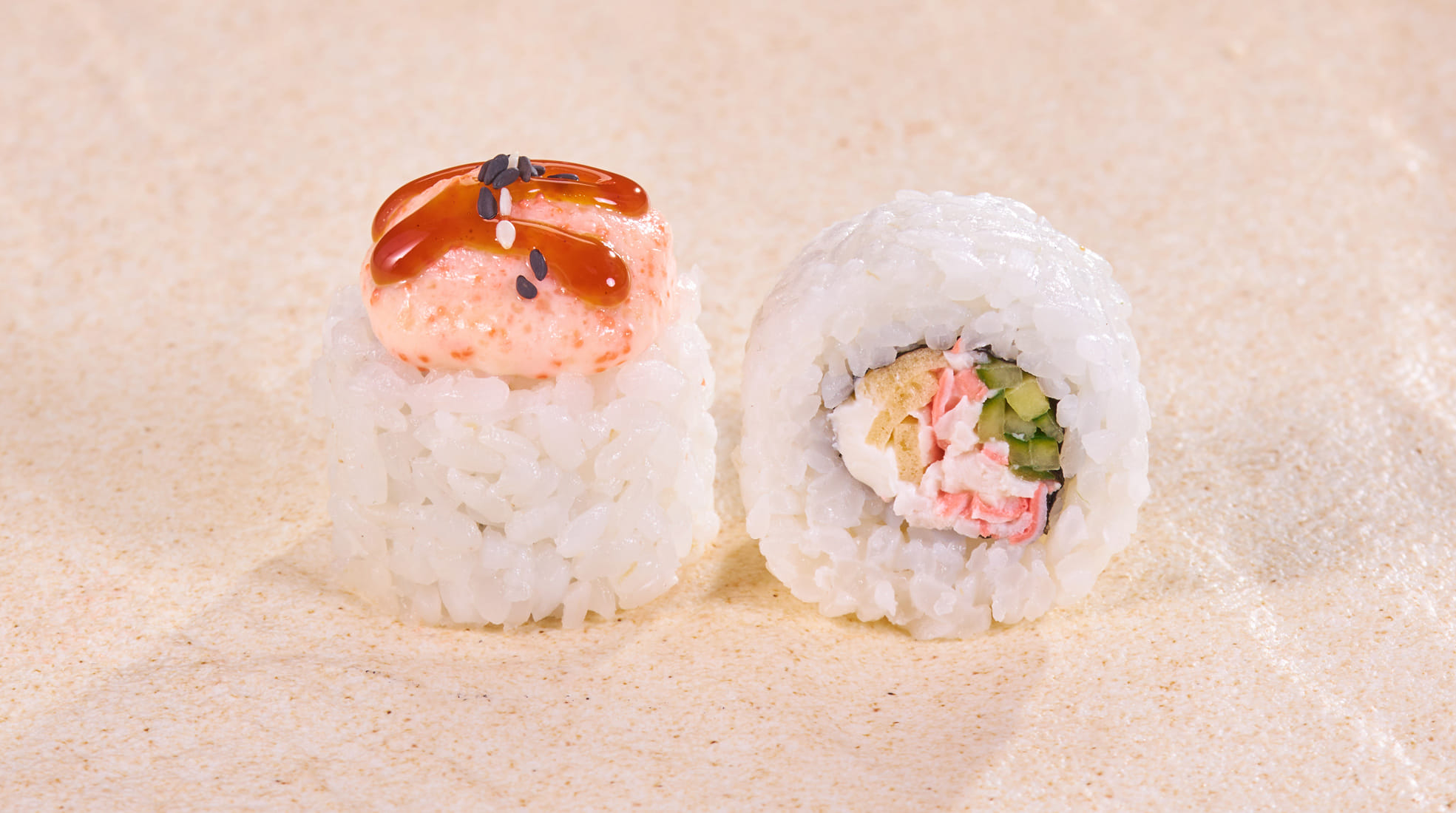 Состав: Крабовые палочки, крем чиз, блин тамаго, огурец, фирменный сырный соус (майонез, сыр пармезан, оранжевая икра масаго), унаги соус, кунжут, рис (рис, вода, заправка для риса), нори *Не забудьте заказать имбирь, васаби и соевый соус. Они не входят в стоимость заказа. *Внешний вид блюда может отличаться от фото на сайте.