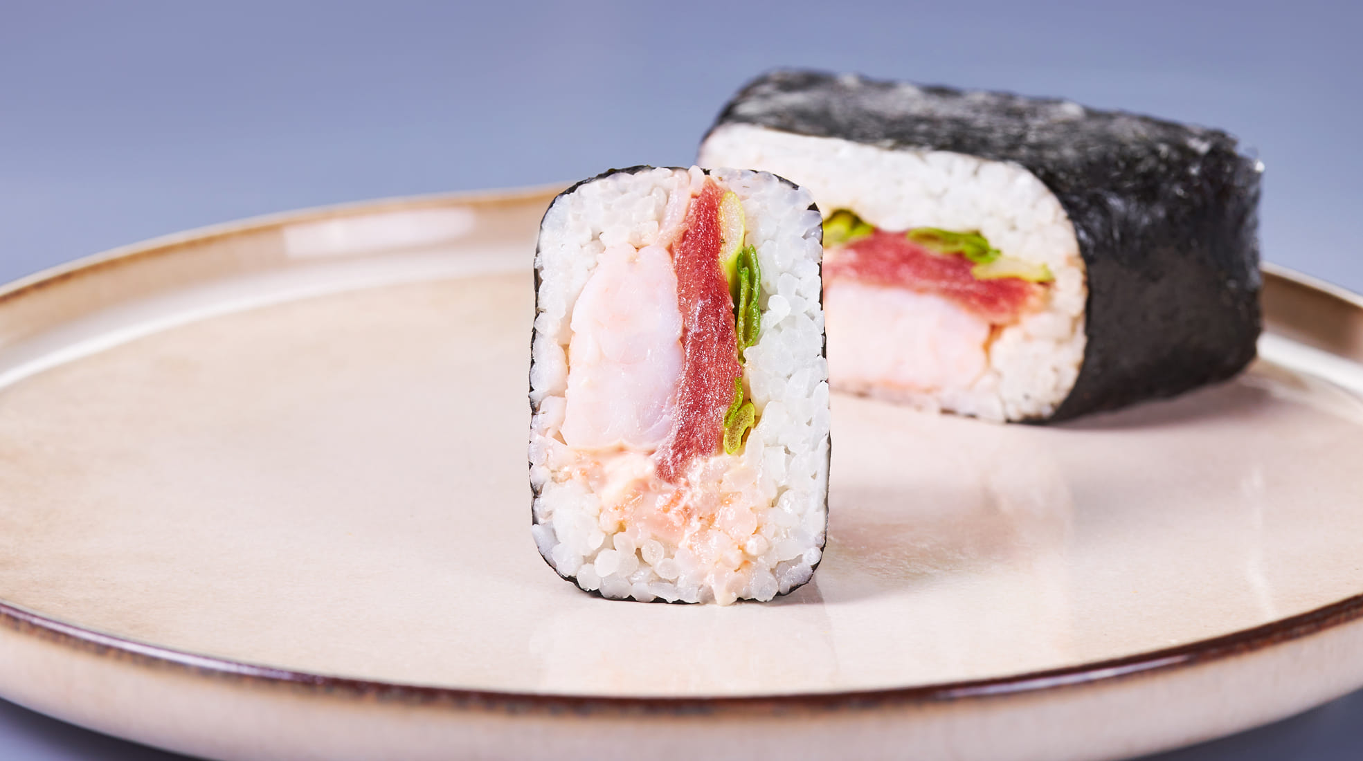 Онигири с тунцом, креветкой и зеленым луком