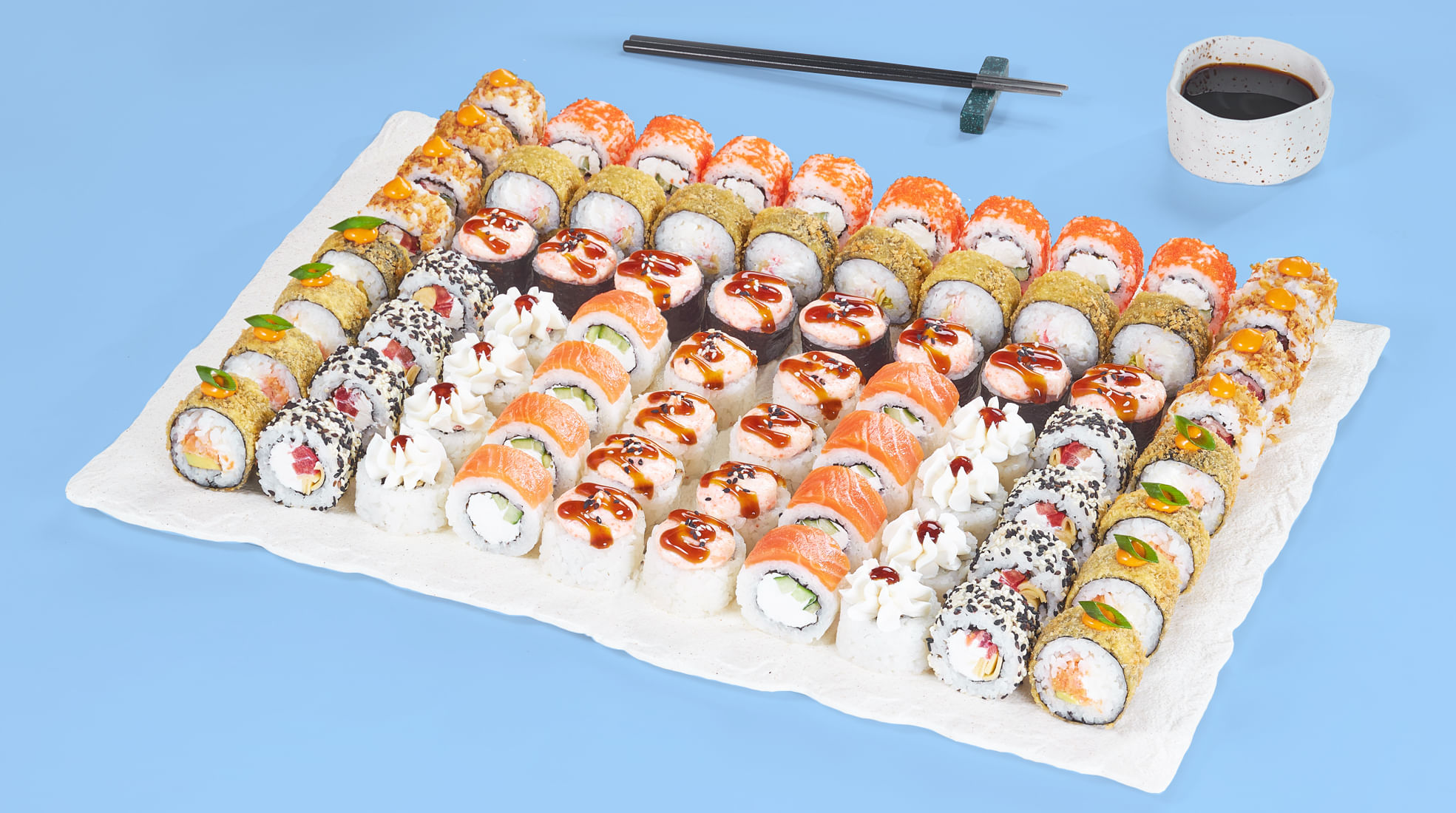 Состав: Ролл Бао (8 шт), ролл Филадельфия лайт с огурцом (8 шт), ролл Белоснежка (8 шт), Царевна ролл (8 шт), ролл Бали (8 шт), ролл Спешл (8 шт), ролл Флай-скай (8 шт), ролл Сицилия (8 шт), ролл Шедевр (8 шт). *Не забудьте заказать имбирь, васаби и соевый соус. Они не входят в стоимость заказа. *Внешний вид блюда может отличаться от фото на сайте.